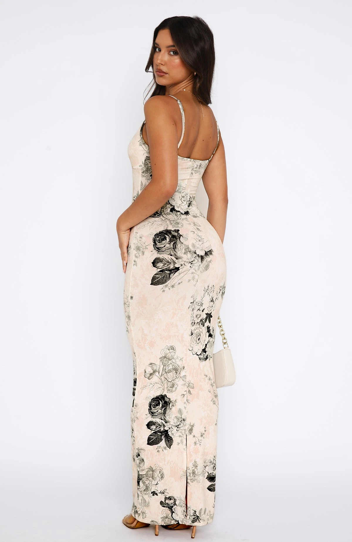 Perfect for brunch dates and summer drinks, the Sorrows Maxi Dress Cream Rose exudes elegance. This maxi dress features thin, adjustable straps, bust cups, low neckline and stretch fabric. We love this paired with clear mules and gold accessories for an on-trend look!
